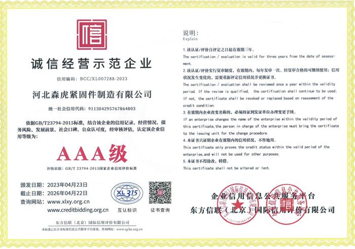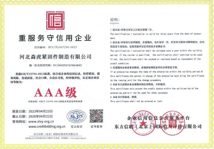 河北森虎緊固件制造有限公司成立于2011年,是建廠較早的緊固件企業(yè)。西臨京廣線,東臨京深高速,地理位置優(yōu)越,交通便利。 主要生產(chǎn):化學(xué)錨栓、機(jī)械錨栓、定型化學(xué)錨栓、高強(qiáng)度8.8級(jí)化學(xué)錨栓、自切底機(jī)械錨栓、車修壁虎,膨脹螺栓,植筋膠。 質(zhì)量方針:先進(jìn)技術(shù)、科學(xué)管理、優(yōu)良品質(zhì)、用戶滿意; ...